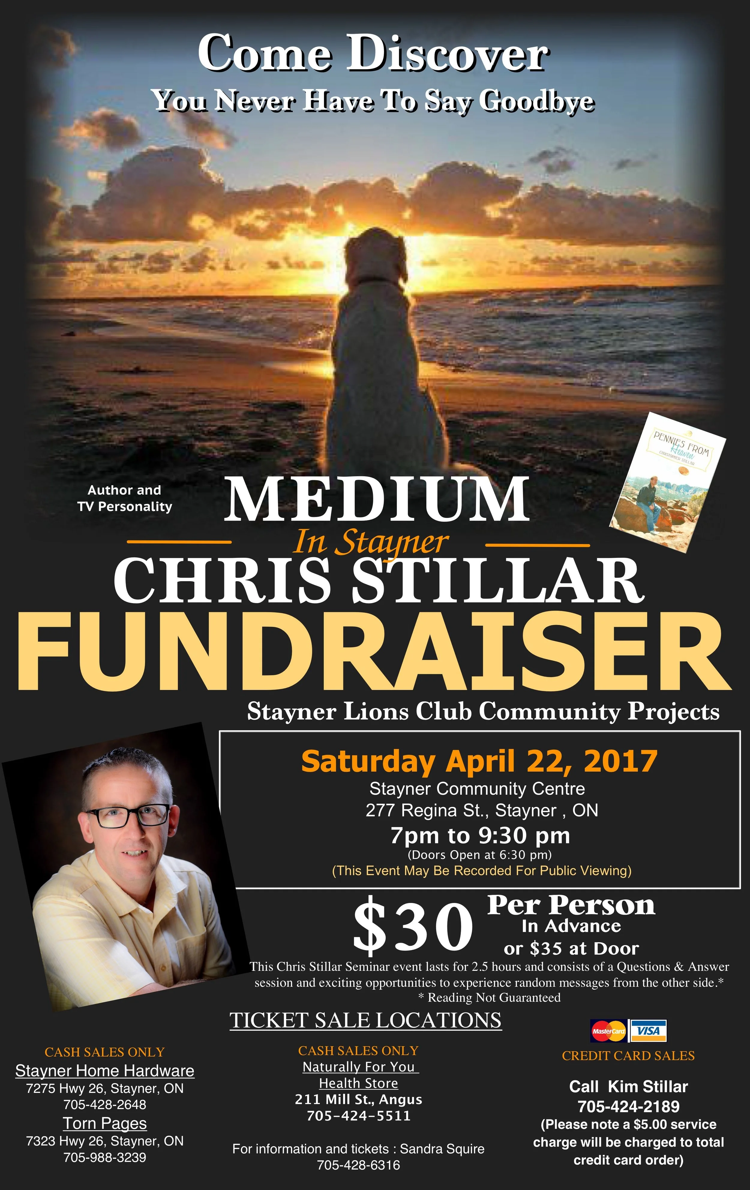 Credit Card sales: Call Kim Stillar at 705-424-2189. please note a $5. service charge will be billed to all complete orders.